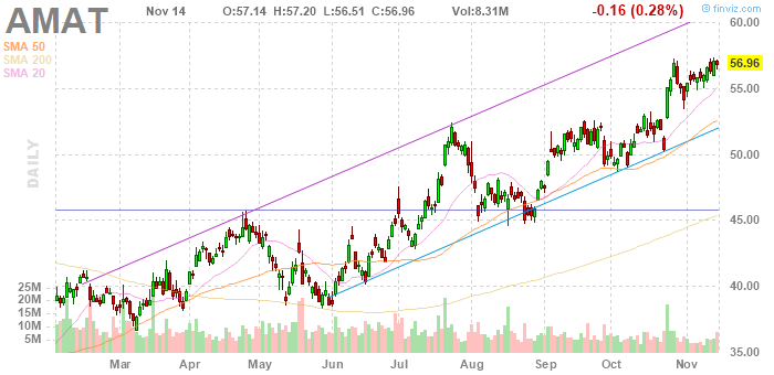 Акции AMAT на премаркете выросли до уровня $60.00 (+5.34%).