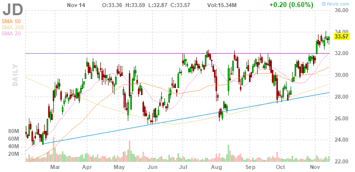 Акции JD на премаркете выросли до уровня $35.44 (+5.57%).
