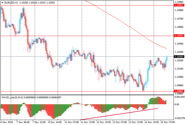 ЕUR/USD: в течение европейской сессии пара торгуется в диапазоне $1.1015-35, после роста в конце вчерашних торгов с$1.0990 до $1.1030