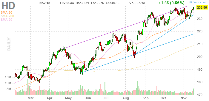 Акции HD на премаркете снизились до уровня $229.50 (-3.91%).