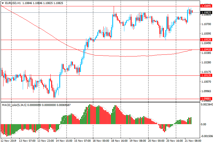 ЕUR/USD: в течение европейской сессии пара выросла к максимуму понедельника $1.1090 после снижения вчера до $1.1050