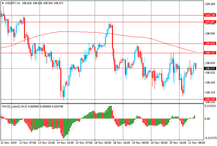 USD/JPY: в течение европейской сессии пара торгуется около уровня закрытия вчерашней сессии Y108.60, после снижения с начала торгов до Y108.25