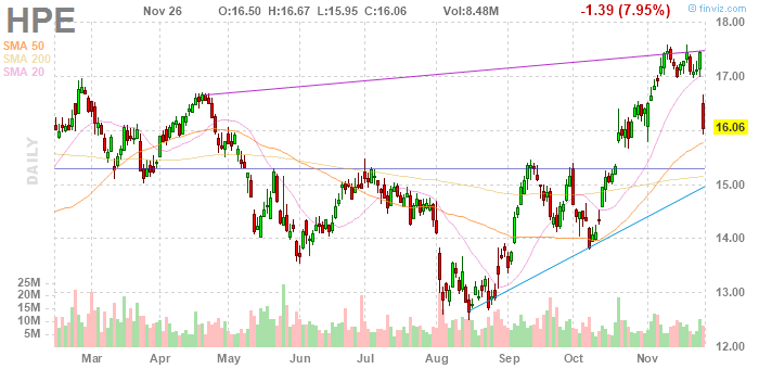 На текущий момент акции HPE котируются по $16.06 (-7.95%).