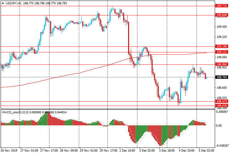 Вчера пара USD/JPY торговалась в основном с ростом в диапазоне Y108.40-95. Сегодня пара торгуется в узком диапазоне Y108.80-95, немного ниже вчерашнего максимума. USD/JPY торгуется ниже уровня скользящей средней МА (200) Н1 (Y109.10), и на четырехчасовом графике тестирует МА (200) H4 (Y108.80), указывая на переход под контроль медведей. В этой ситуации стоит придерживаться северного южного в торговле, и на образование коррекции искать точки входа на продажу