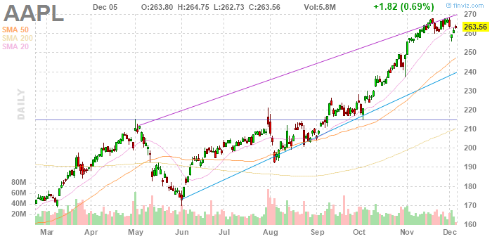 На текущий момент акции AAPL котируются по $263.56 (+0.69%).
