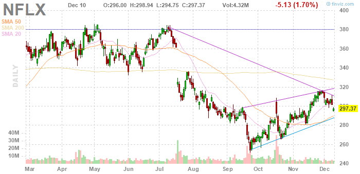 На текущий момент акции NFLX котируются по $297.37 (-1.70%).