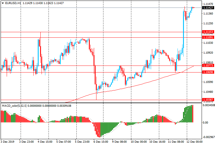 Вчера EUR/USD резко выросла во второй половине дня с $1.1070 до $1.1140, достигнув максимального значения с 5 ноября. Позже пара закрыла сессию около $1.1130. Сегодня евро торгуется с незначительным ростом, достигнув вчерашнего максимума. EUR / USD торгуется выше уровня скользящей средней MA (200) H1 ($1.1080), и на четырехчасовом графике немного выше МА (200) Н4 ($1.1065). В этой ситуации стоит придерживаться северного направления в торговле, и на образование коррекции искать точки входа на продажу.