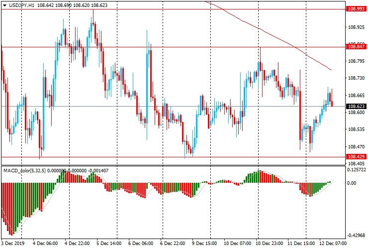 USD/JPY: в ходе европейских торгов пара торгуется с ростом и отступила от вчерашнего минимума Y108.45. Пара выросла к Y108.70