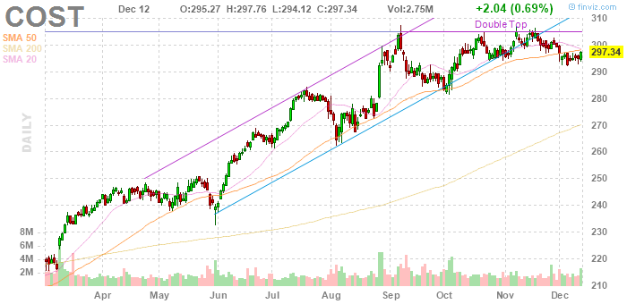 Акции COST по итогам торгов четверга закрылись на уровне $297.34 (+0.69%).