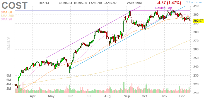 На текущий момент акции COST котируются по $292.97 (-1.47%).