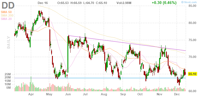 На текущий момент акции DD котируются по $65.10 (+0..46%).