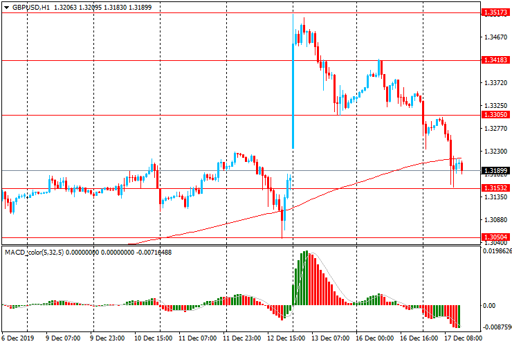 GBP/USD: пара снизилась в ходе европейских торгов с $1.3305 до $1.3155, продолжая снижения начатое в начале сессии.