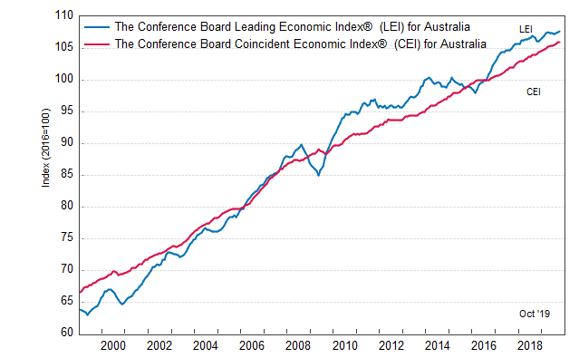 Результаты исследований, опубликованные Conference Board, показали: по итогам октября ведущий экономический индекс (LEI) для Австралии вырос на 0,2 процента, и составил 107,7 пункта (2016=100). Напомним, индекс зафиксировал повышение на 0,2 процента в сентябре и увеличение на 0,1 процента в августе. В течение шести месяцев (с апреля 2019 по октябрь 2019 года) показатель вырос на 0,2 процента после аналогичного повышения за предыдущий шестимесячный период (с марта 2019 года по сентябрь 2019 года).