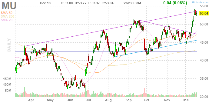 Акции MU на премаркете выросли до уровня $54.90 (+3.51%).