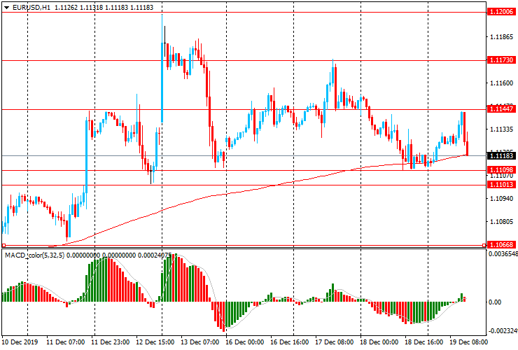ЕUR/USD: пара в ходе сегодняшних торгов выросла с $1.1110 до $1.1145, на момент публикации статьи снизилась до $1.1130