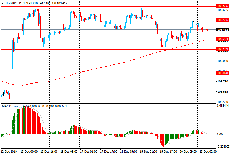 В пятницу USD/JPY в основном торговалась в узком диапазоне Y109.25-40, но к концу торгов выросла и закрыла сессию около Y109.50. Сегодня пара начала торги с незначительным снижением, опустившись до Y109.50. USD/JPY продолжает торговаться немного выше уровня скользящей средней МА (200) Н1 (Y109.30) и на четырехчасовом графике выше МА (200) H4 (Y109.00). В этой ситуации стоит придерживаться северного направления в торговле, и искать точки входа на продажу
