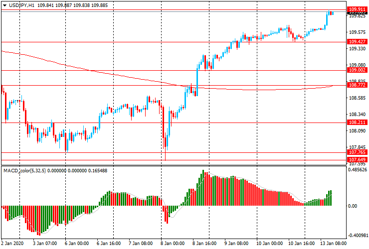 USD/JPY: в ходе европейских торгов пара выросла с Y109.60 до Y109.90, после того как с начала сессии оставалась в рамках пятничного диапазона Y109.40-65