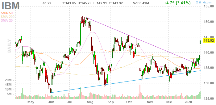 Как отмечает CNBC, акции IBM (IBM) выросли на 3.4% во вторник после того, как компания опубликовала превысившие ожидания результаты за четвертый квартал 2019 года и прогноз прибыли на весь 2020 год.