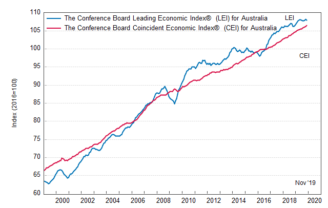 Результаты исследований, опубликованные Conference Board, показали: по итогам ноября ведущий экономический индекс (LEI) для Австралии снизился на 0,3 процента, и составил 107,9 пункта (2016=100). Напомним, индекс зафиксировал повышение по 0,2 процента в октябре и сентябре. В течение шести месяцев (с мая 2019 по ноябрь 2019 года) показатель упал на 0,2 процента после повышения на 0,1 процента за предыдущий шестимесячный период (с апреля 2019 года по октябрь 2019 года).