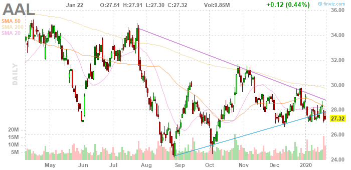 Акции AAL на премаркете снизились до уровня $27.10 (-0.81%).