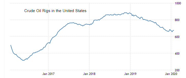 Отчет нефтесервисной компании Baker Hughes показал: с 18 по 24 января количество активных буровых установок по добыче нефти в США увеличилось на 3 единицы, и составило 676 штук. Это было второе повышение подряд. Напомним, годом ранее количество установок составляло 862 штуки. Количество установок по добыче газа снизилось на 5 штук, и составило 115 единиц. Общее число буровых установок (газовых, нефтяных и прочих) упало на 2 штуки, и составило 794 штуки (по сравнению с 1059 единиц годом ранее).