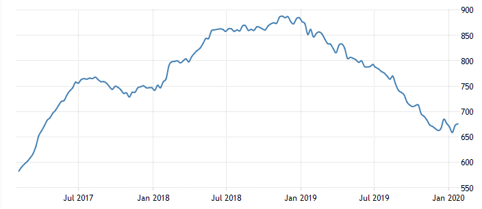 Отчет нефтесервисной компании Baker Hughes показал: с 25 по 31 января количество активных буровых установок по добыче нефти в США снизилось на 1 единицу, и составило 675 штук. Это было первое снижение за три недели. Напомним, годом ранее количество установок составляло 847 штук. Количество установок по добыче газа снизилось на 3 штуки, и составило 112 единиц. Общее число буровых установок (газовых, нефтяных и прочих) упало на 4 штуки, и составило 790 штук (по сравнению с 1045 единиц годом ранее).