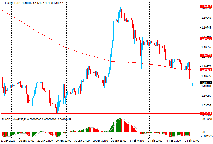 ЕUR/USD: пара снизилась к минимуму 31 января $1.1015.