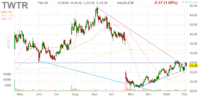 Согласно обнародованному отчету, прибыль компании Twitter (TWTR) по итогам четвертого квартала 2019 финансового года (ФГ) достигла $0.15 в расчете на одну акцию (против $0.31 на одну акцию в четвертом квартале 2018 ФГ), что оказалось ниже среднего прогноза аналитиков на уровне $0.17 на одну акцию.