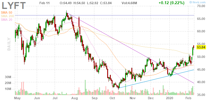 На текущий момент акции LYFT котируются по $53.84 (+0.22%).