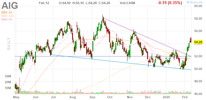 Акции AIG на премаркете снизились до уровня $54.19 (-0.17%).