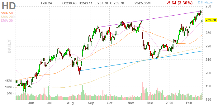 Согласно обнародованному отчету, прибыль компании Home Depot (HD) по итогам четвертого квартала 2019 финансового года (ФГ) достигла $2.28 в расчете на одну акцию (против $2.25 на одну акцию в четвертом квартале 2018 ФГ), что оказалось выше среднего прогноза аналитиков на уровне $2.11 на одну акцию.