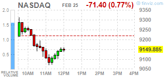 | Nasdaq 100 | 9034.25 | -56.75 | -0.62% |
