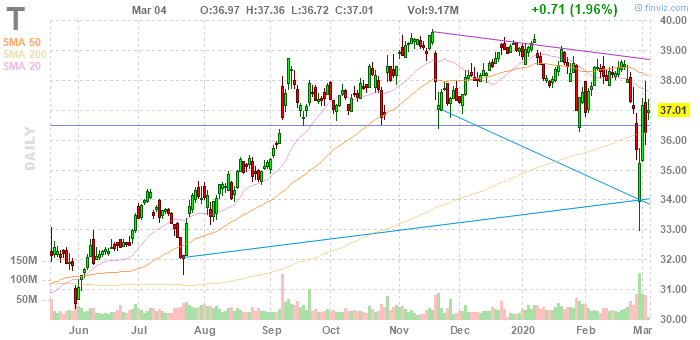 На текущий момент акции T котируются по $37.01 (+1.96%).