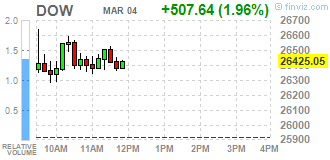 | Dow | 26395.00 | +515.00 | +1.99% |