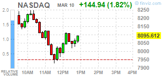 | Nasdaq 100 | 8059.25 | +107.75 | +1.36% |