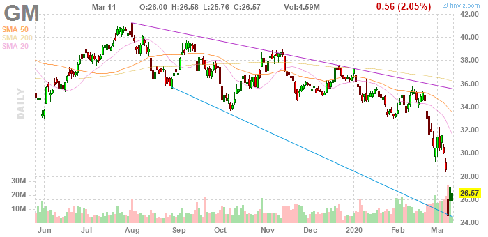 Как сообщает TheStreet, в среду аналитик Morgan Stanley снизил свою оценку целевой стоимость акций General Motors (GM), Ford (F), Fiat Chrysler (FCAU), а также несколько других автодилеров из-за возможности "шока спроса", вызванного быстро распространяющимся коронавирусом.