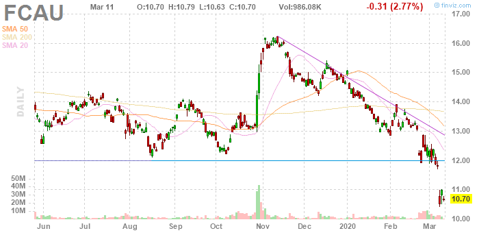 Hа текущий момент акции GM котируются по $26.57 (-2.05%), акции F - по $6.06 (-3.27%) и акции FCAU - по $10.70 (-2.77%).