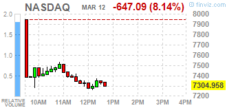 Основные фондовые индексы США обвалились более, чем на 8% каждый, так как опасения глобальной рецессии усилились после того, как американский президент объявил о временном запрете на въезд в США из Европы, чтобы остановить распространение коронавируса.