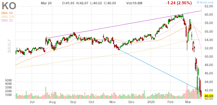 На текущий момент акции KO котируются по $40.59 (-2.96%).