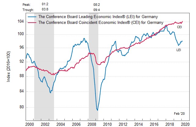 Результаты исследований, опубликованные Conference Board, показали: по итогам февраля ведущий экономический индекс (LEI) для Германии не изменился, и составил 98,0 пункта (2016=100). Напомним, индекс зафиксировал повышение на 0,3 процента в январе и снижение на 0,1 процента в декабре. В течение шести месяцев (с августа 2019 по февраль 2020 года) показатель вырос на 1,3 процента после увеличения на 0,6 процента за предыдущий шестимесячный период (с июля 2019 года по январь 2020 года).