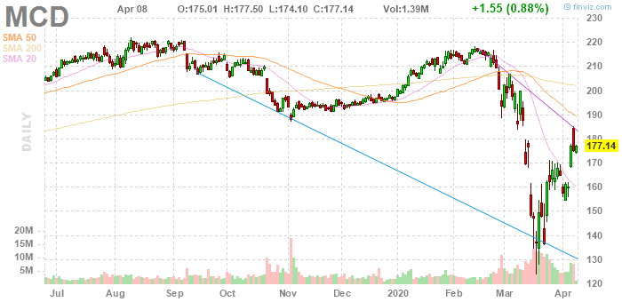 Как сообщает CNBC, компания McDonald's (MCD) заявила среду, что ее глобальные сопоставимые продажи в марте на 22%, поскольку пандемия коронавируса привела к тому, что сеть ресторанов быстрого питания закрыла свои залы.