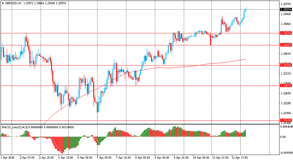 Вчера пара GBP/USD торговалась с повышением и закрыла очередной день на положительной территории около цены $1.2505. Сегодня пара также выросла, поднявшись к отметке $1.2565. На часовом графике GBP/USD все еще торгуется выше линии скользящей средней МА (200) Н1 ($1.2380). На четырехчасовом графике ситуация аналогичная. Исходя из вышесказанного, вероятно, стоит придерживаться северного направления в торговле и пока пара остается выше MA 200 H1, необходимо искать точки входа на покупку на формирование коррекции.