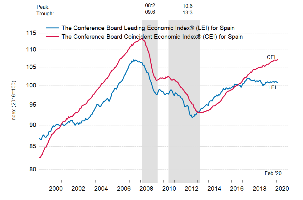 Результаты исследований, опубликованные Conference Board, показали: по итогам февраля ведущий экономический индекс (LEI) для Испании упал на 0,2 процента, и составил 100,7 пункта (2016=100). Напомним, индекс зафиксировал снижение на 0,2 процента в январе и нулевое изменение в декабре. В течение шести месяцев (с августа 2019 по февраль 2020 года) показатель упал на 0,3 процента после нулевого изменения за предыдущий шестимесячный период (с июля 2019 года по январь 2020 года).