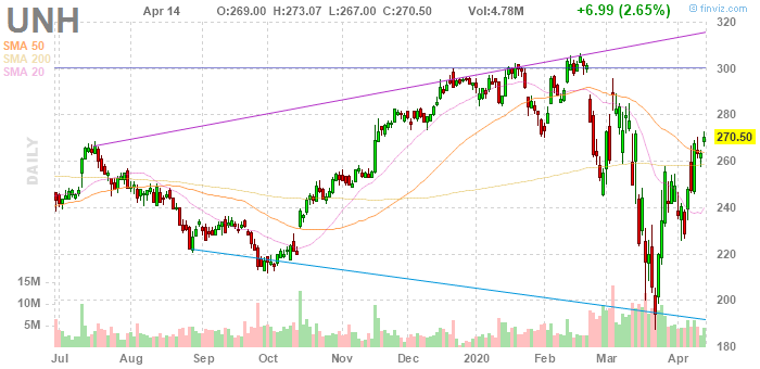 Согласно обнародованному отчету, прибыль компании UnitedHealth (UNH) по итогам первого квартала 2020 финансового года (ФГ) достигла $3.72 в расчете на одну акцию (против $3.73 на одну акцию в первом квартале 2019 ФГ), что оказалось выше среднего прогноза аналитиков на уровне $3.65 на одну акцию.