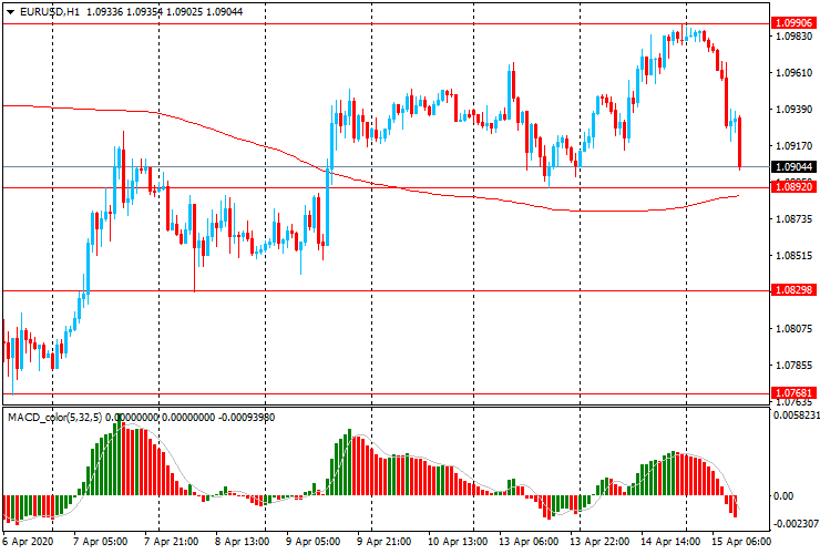 ЕUR/USD: пара торгуется со снижением с $1.0990 до $1.0910,