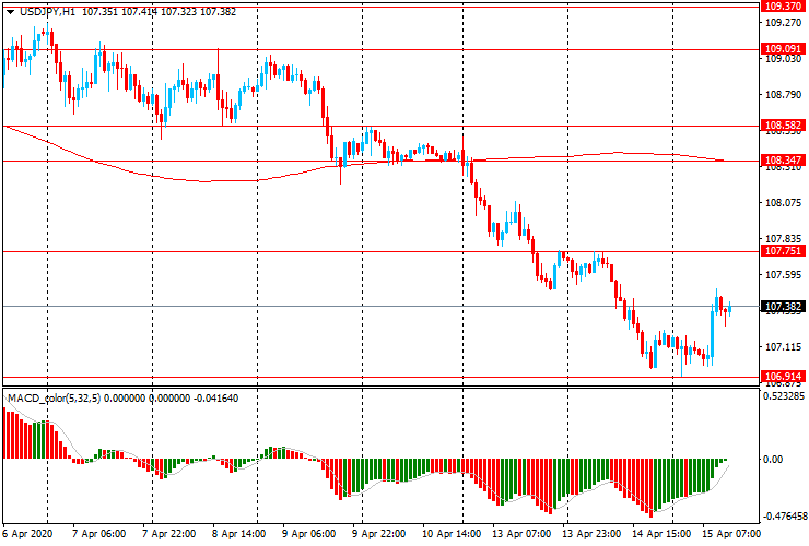 USD/JPY: сегодня, с начала сессии, пара торговалась в узком диапазоне около вчерашнего минимума и минимума 2 апреля (Y106.90), но в ходе европейских торгов пара выросла к Y107.50