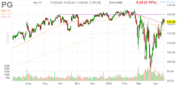 На текущий момент акции PG котируются по $121.28 (-0.19%).