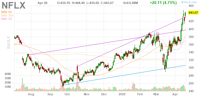 На текущий момент акции NFLX котируются по $443.07 (+4.75%).