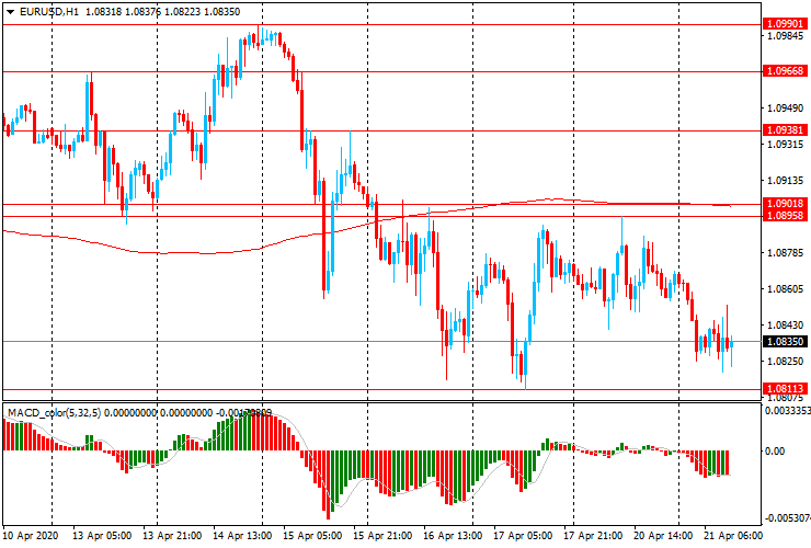 ЕUR/USD: пара торгуется в диапазоне $1.0820-55, после снижения с начала сессии с $1.0870 до $1.0825. На момент написания статьи пара торгуется около $1.0835.