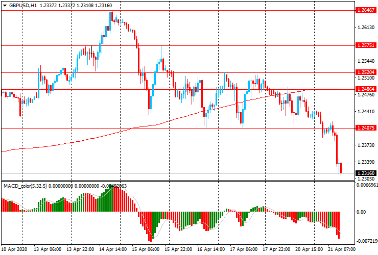 GBP/USD: пара торгуется со снижением, опустившись с $1.2445 до двухнедельного минимума $1.2315.
